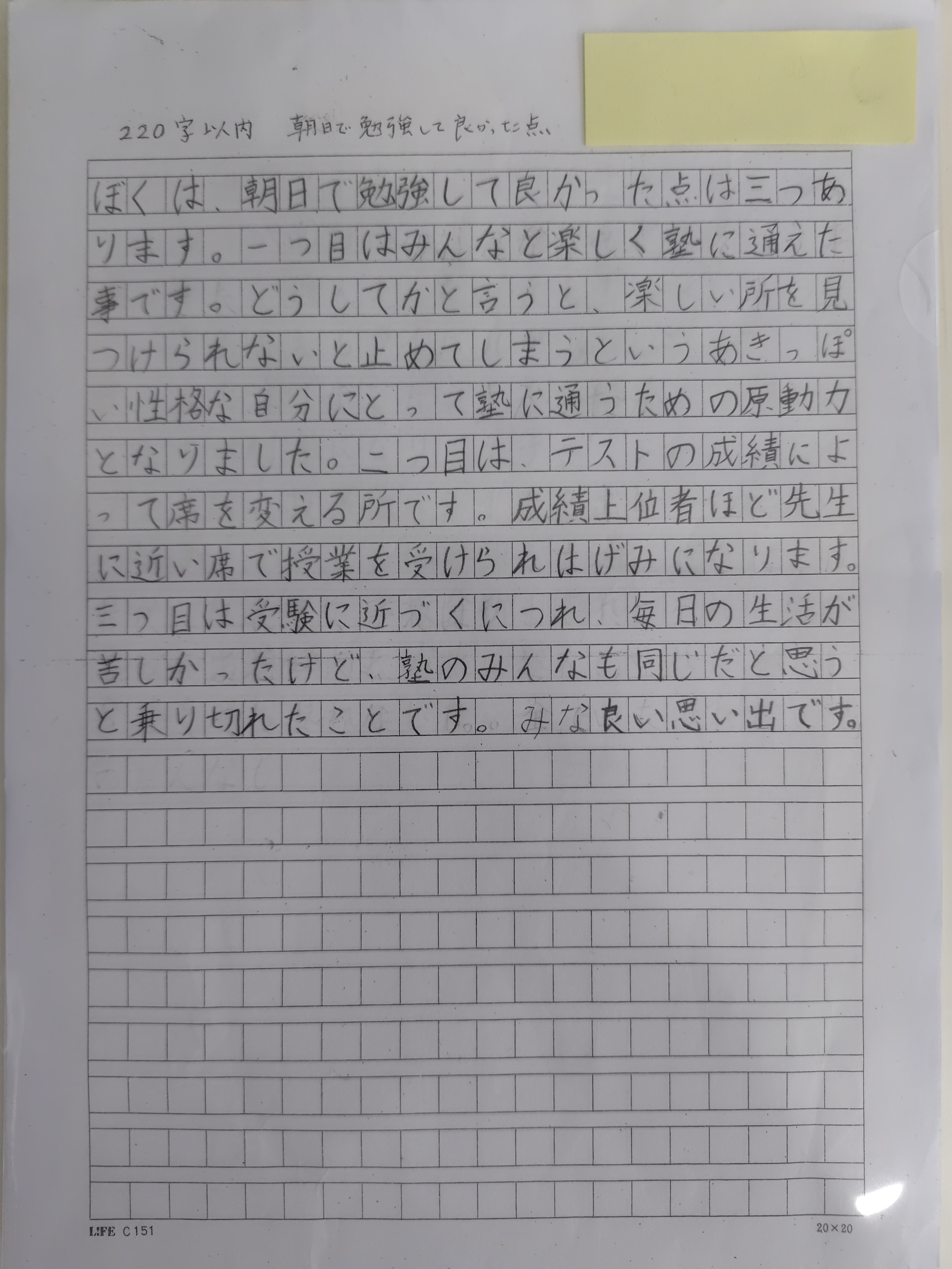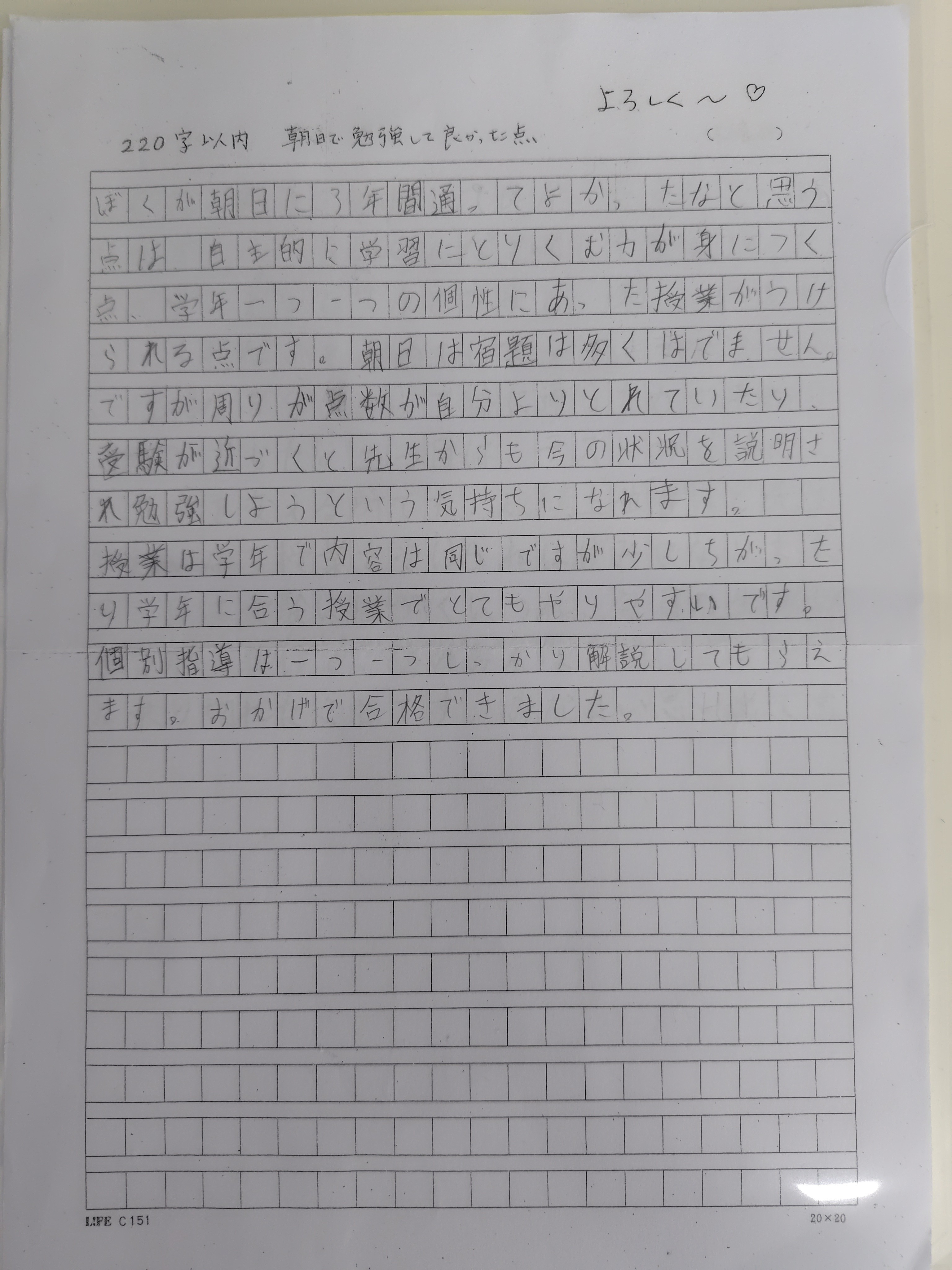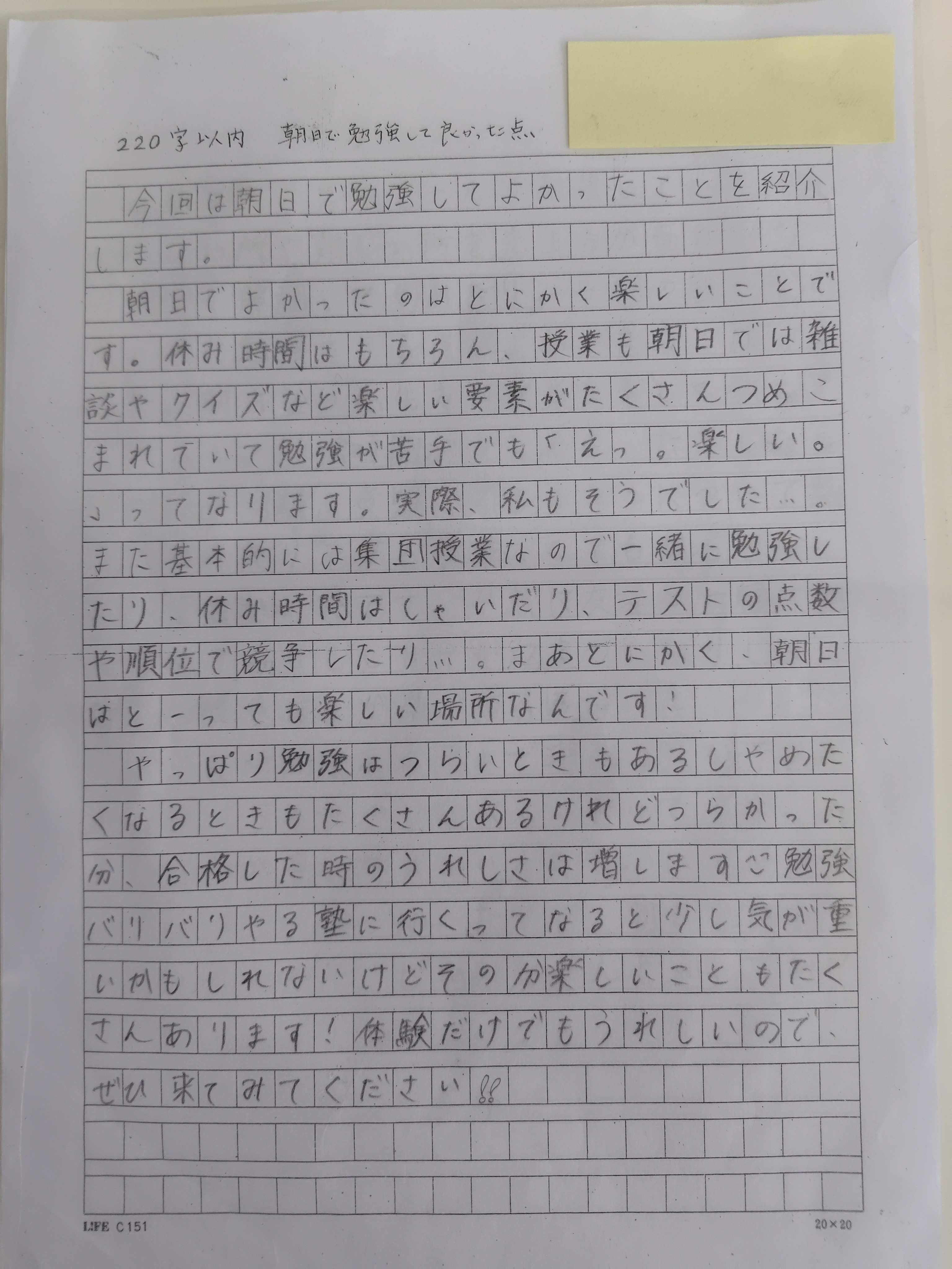 今年度卒塾生が「朝日の良い所」を書いてくれました! |
