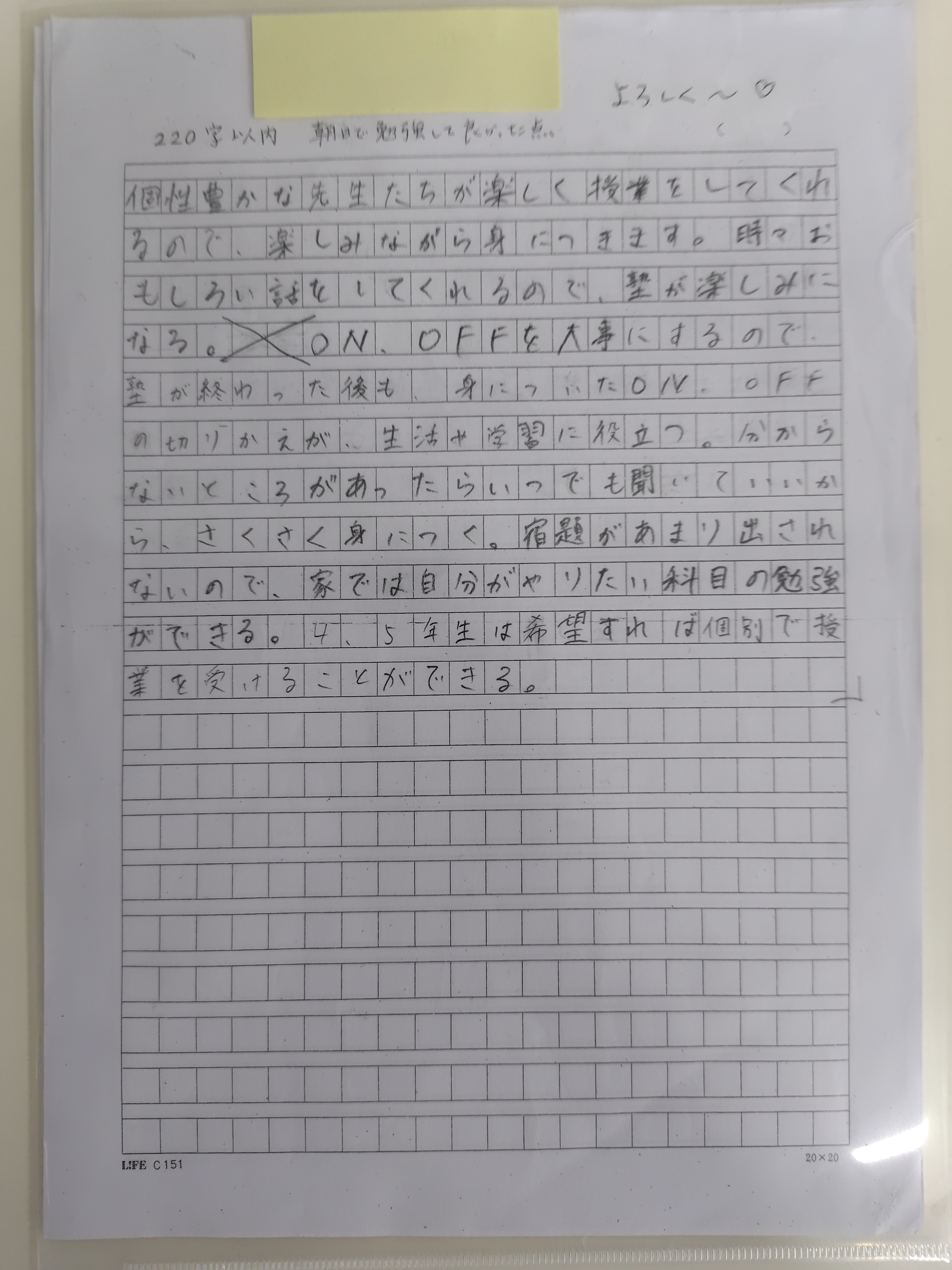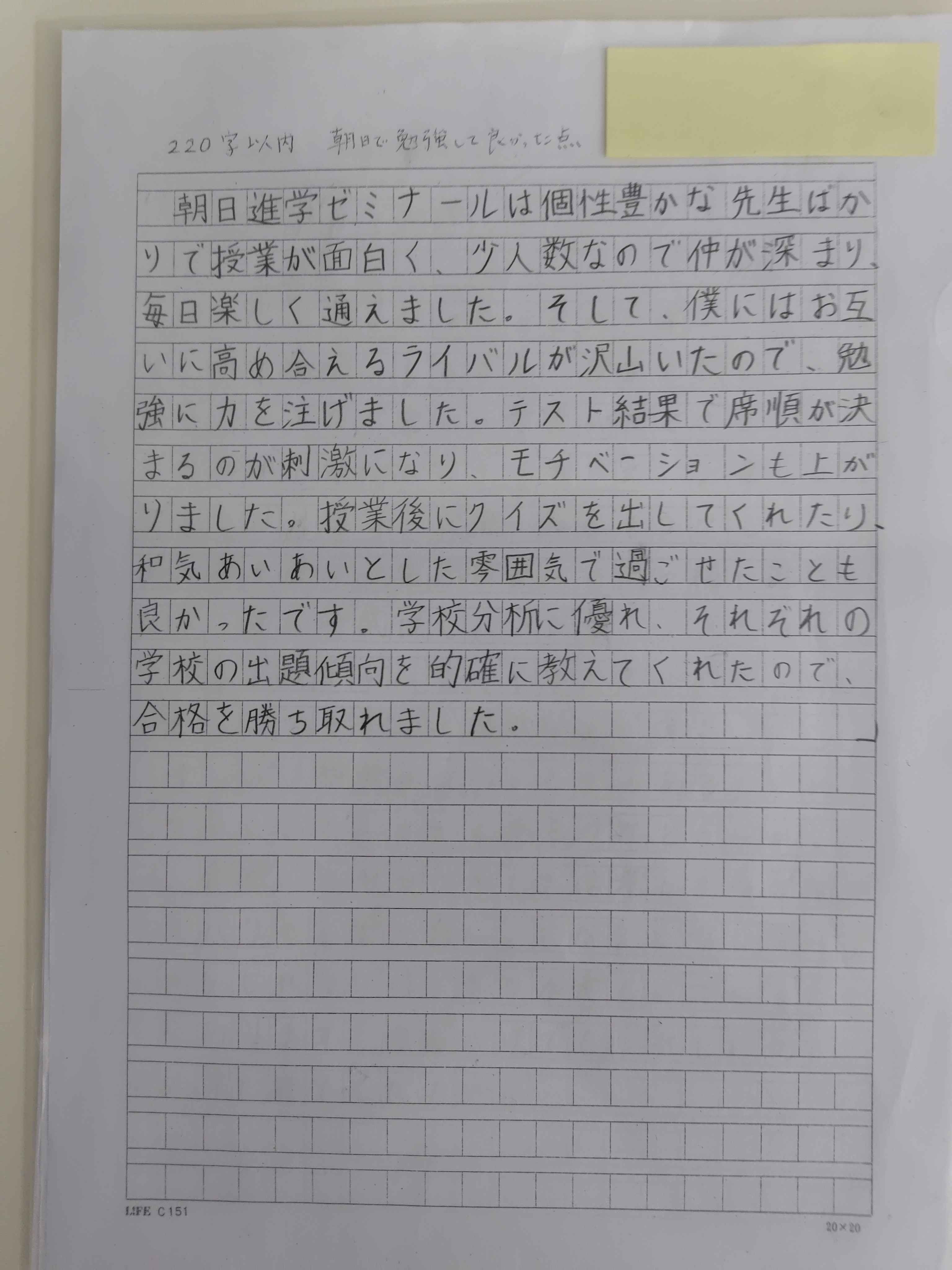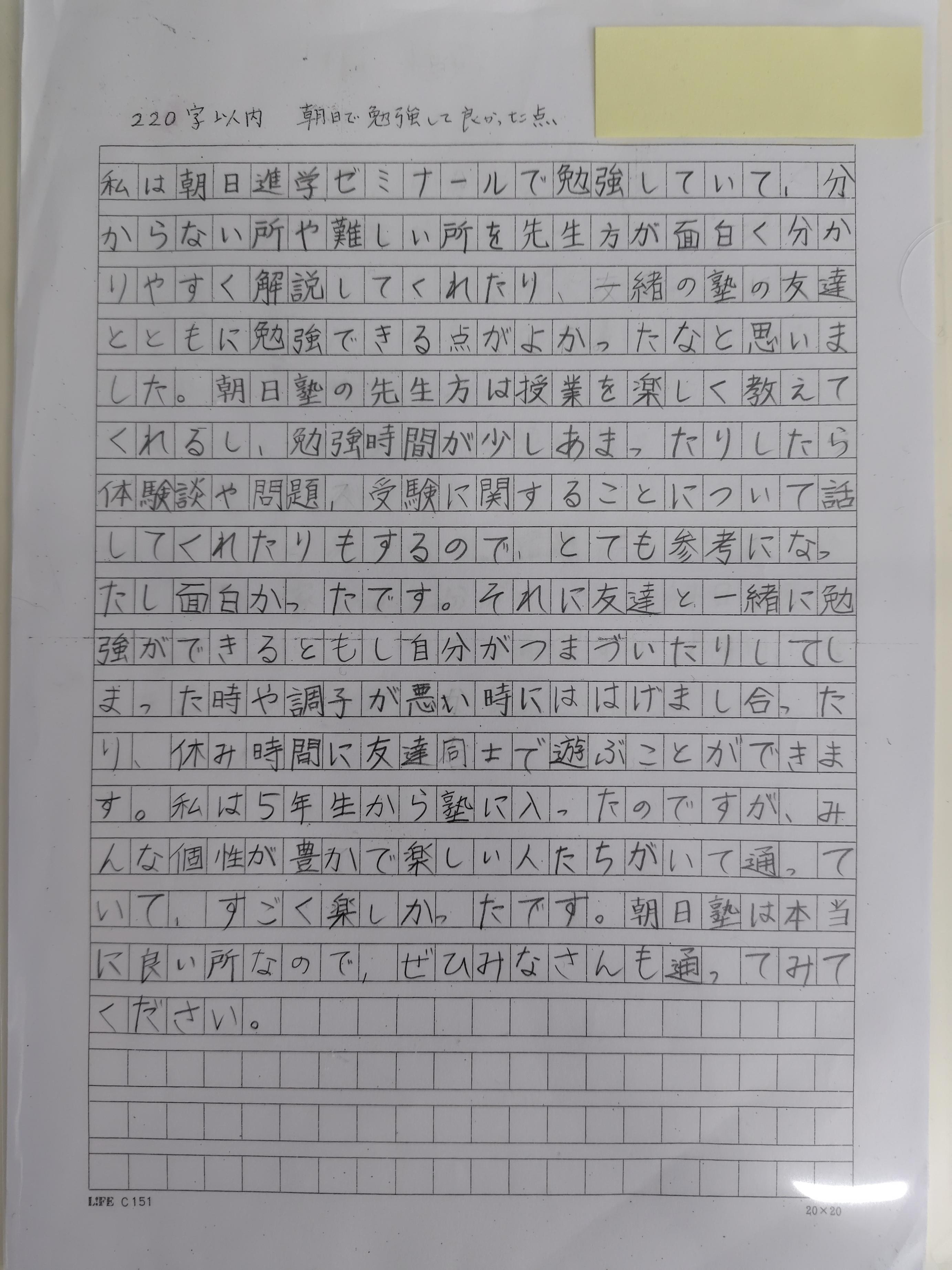 今年度卒塾生が「朝日の良い所」を書いてくれました! |